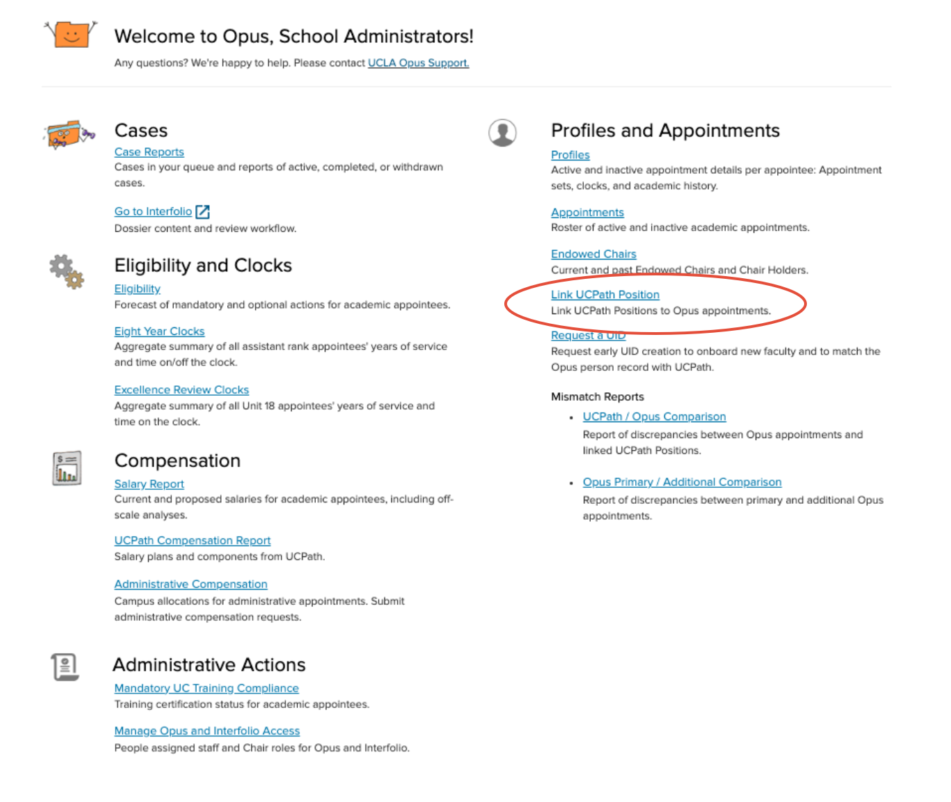 Link UCPATH Position is a feature that allows department staff to record the UC PATH position number in its corresponding appointment in Opus. Making this link in Opus will assist in future integrations between Opus and UCPATH.