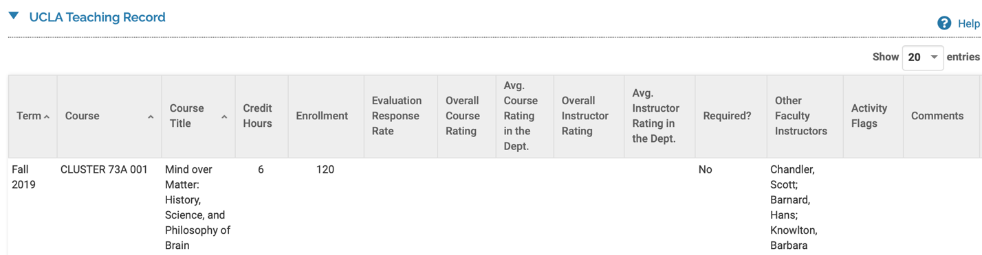 All undergraduate and graduate courses listed in UCLA's Schedule of Classes will automatically be populated into the UCLA teaching section.